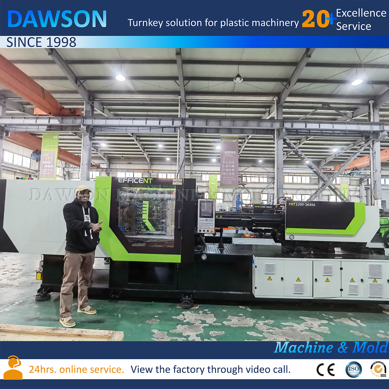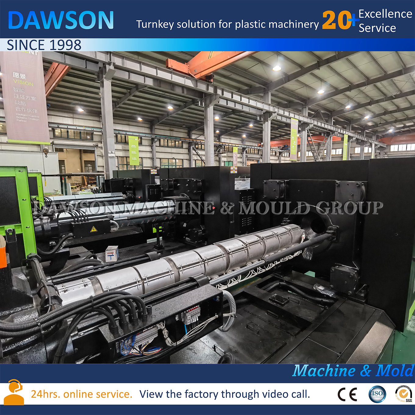 DAWSON provide customers with turnkey projects. Including plant design, plastic machine and mold installation, debugging, also we can source the auxiliary equipment for customers. We can ship the full set of machines after testing in our factory. It will save a lot of cost and time.